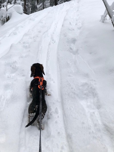 Da geht es darum in freier Suche, ohne dass der Hund weiss, wo er suchen muss, Pirschzeichen zu finden.