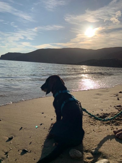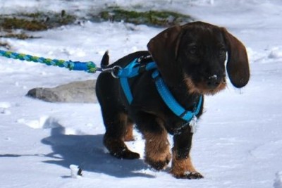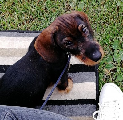 Dirak-Amédéo: Aufmerksamer Blickkontakt mit Sophie in der Welpenschule.
