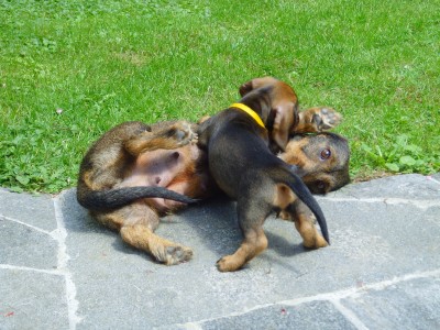 Auf dem Bild ist sie als Welpe beim Spielen mit ihrer Mutter Ambra zu sehen. Aus den Namen Bona und Ambra ist unser Zuchtstättenname "Bonambra" entstanden. Susanne Ruzsics "vom Lärchentobel" hat uns dieses schöne Foto geschickt! Herzlichen Dank Susanne!!